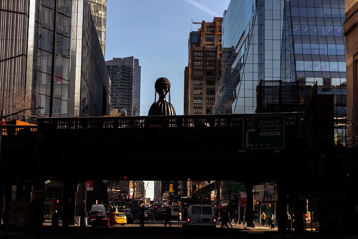 Simone Leigh’s “Brick House,” gazing down Tenth Avenue from the High Line Plinth, celebrates Black female beauty and strength in the public sphere. Credit Jeenah Moon for The New York Times