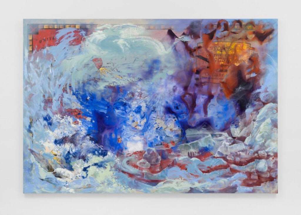 Firelei Baez paints colorful abstractions and intricate figures directly onto old maps and prints. Americananana, the title of the exhibition, reveals the absurdity of Americana as a cultural construction building upon, and often suppressing more complex histories of America. The pieces displayed were symbolic of a nostalgic brand of America that was created by the projected desire for an idealized past that never was.