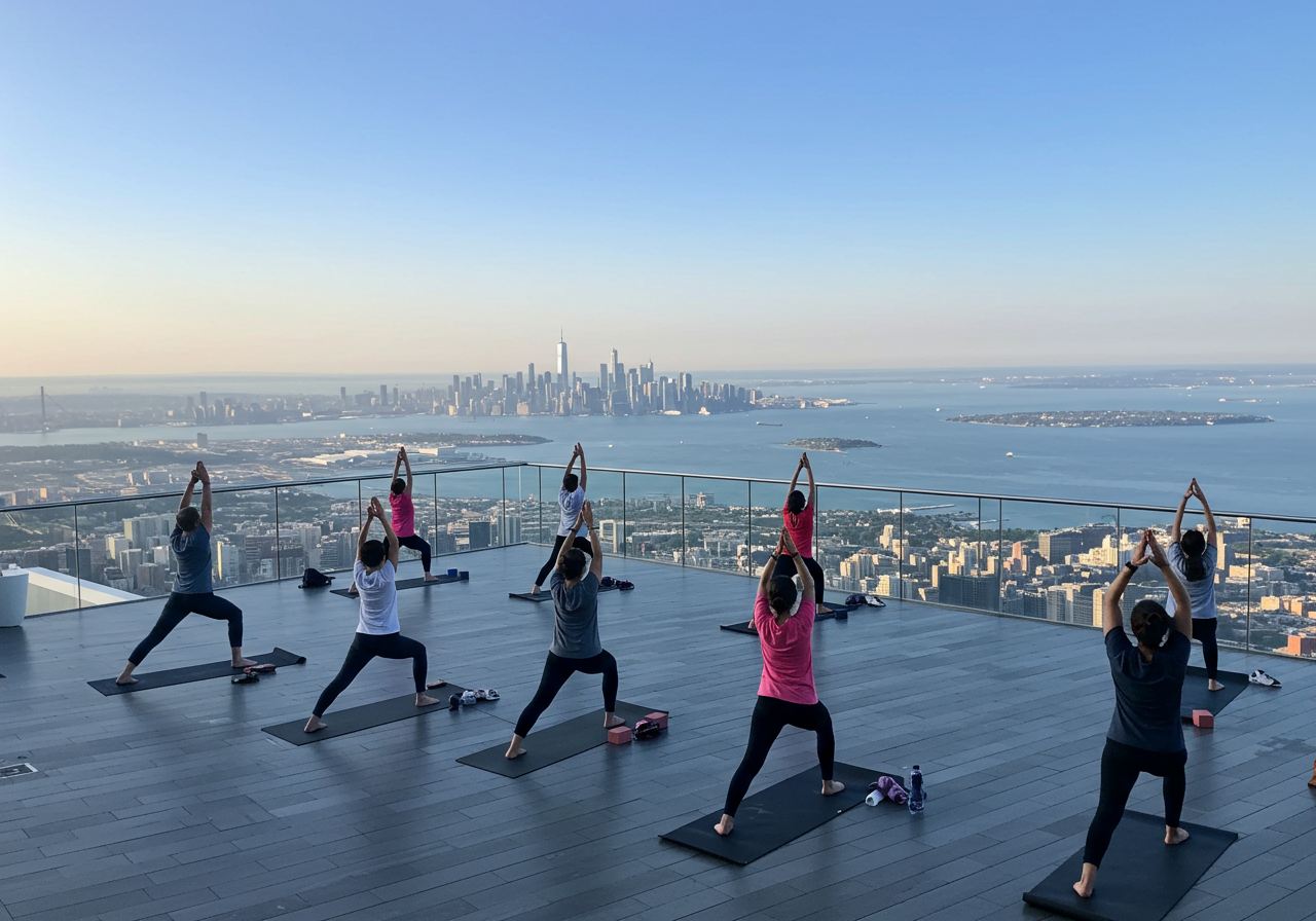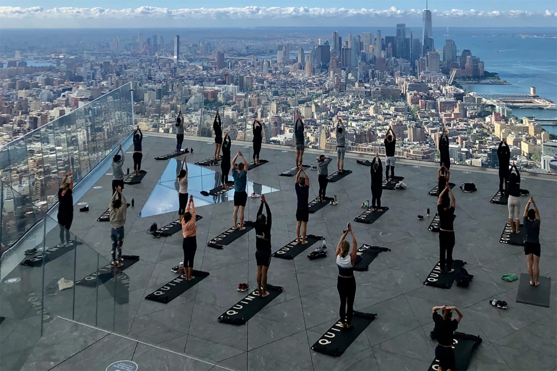 Yoga is known to be grounding, but how about grounding your chakras from the tippy-top of NYC? Edge, the tallest outdoor observation deck in the Western Hemisphere has teamed up with Equinox gym to bring New Yorkers a fitness class 1,100 feet in the sky.