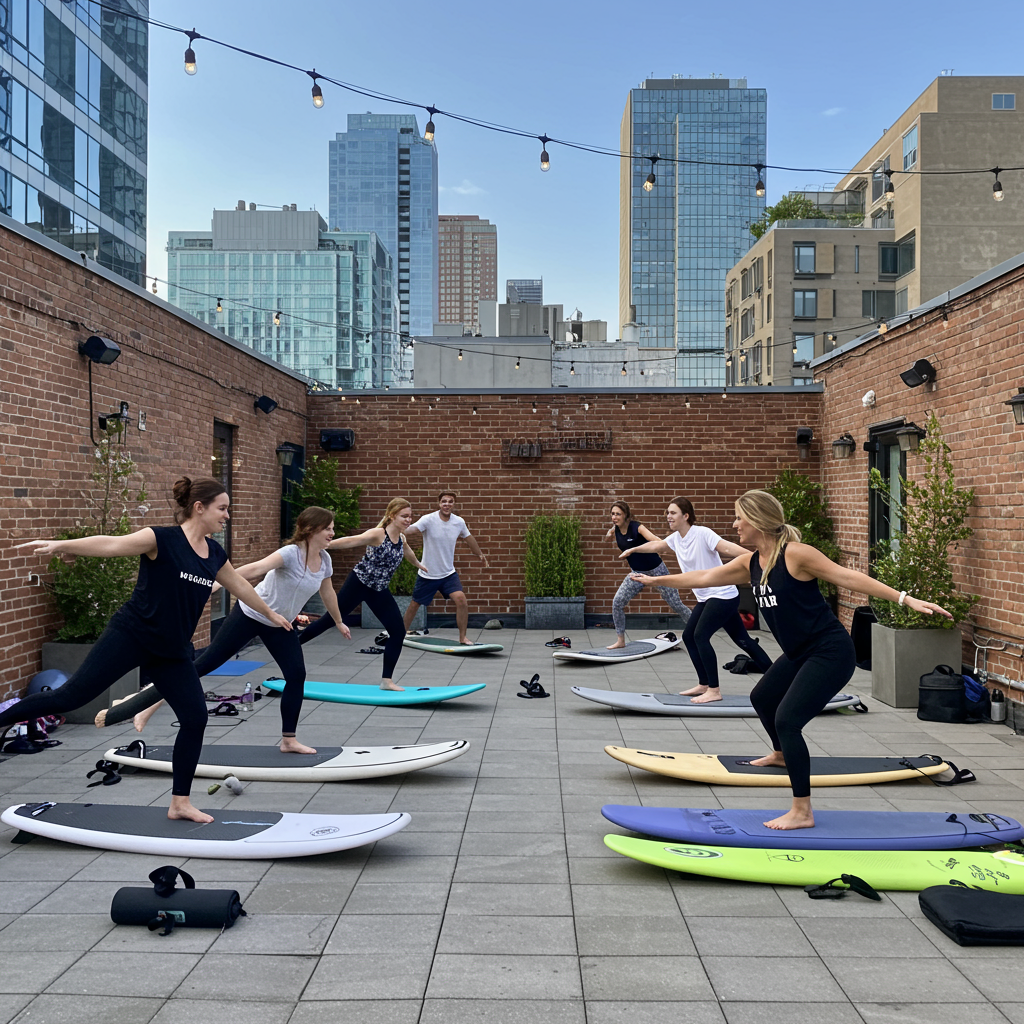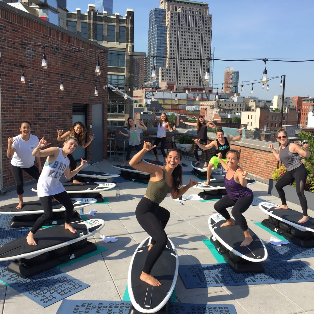 SURF & SHORE Classes: These are surfboard and mat-based classes. These circuit-based classes focus on cardio and strength intervals with workout stations that incorporate different beach tools – from our signature surfboards to sand weights to volleyballs.