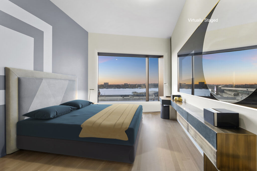 The warm yet sophisticated ambiance is further enhanced by handmade Italian furnishings, unique items like a distinctive billiards table that transforms into a coffee table, top-of-the-line materials including Baxter leathers, luminous metals, and an elegant art collection gracing the walls. Rooms are enriched by gorgeous French-inspired oak herringbone floors, and glamorized by airy 11-foot ceilings. Massive windows with built-in seating facing west, east and north invite in generous natural light and showcase stunning Hudson River and city views for your daily pleasure.